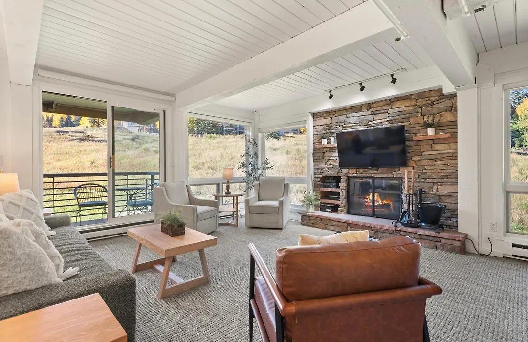 A terrace here boasts the views of the mountain. The Snowmass Village property includes a bathroom with a spa bathtub and a separate toilet. Bathrooms also feature a hairdryer for added comfort.